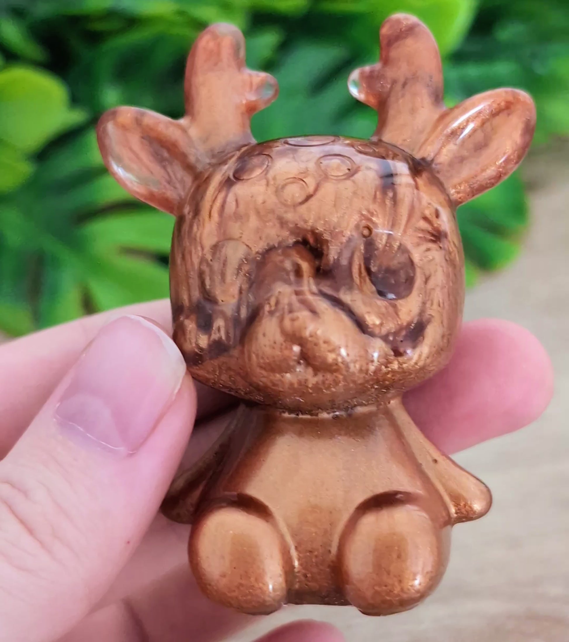 Apportez une touche de charme et d’originalité à votre décoration avec cette adorable figurine en forme de renne, entièrement réalisée à la main en résine.